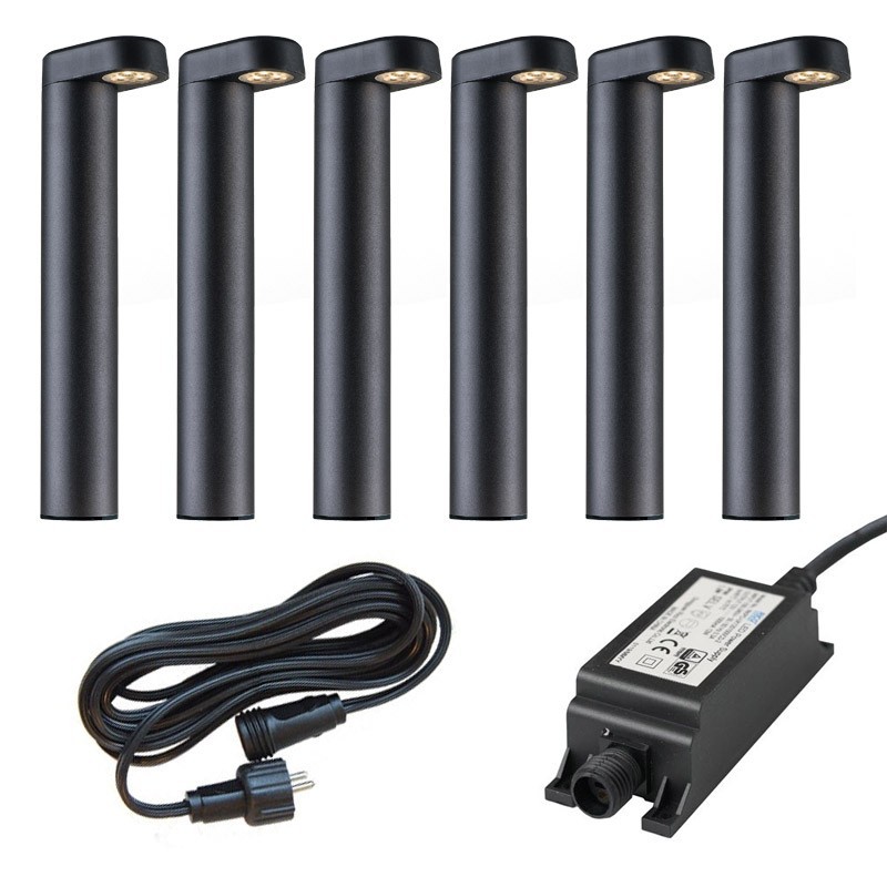 The Ludeco system can extend to a maximum of 50mtrs with a maximum loading of either 12W or 24W depending on which transformer you have selected. You can also add a dusk to dawn sensor so you don't have to worry about turning the lights off manually. The Ludeco Oskar is a 12V LED post/down light made from plastic and steel with a black powder coating, it comes with 0.5mtrs of pre-moulded SPT-1 cable.