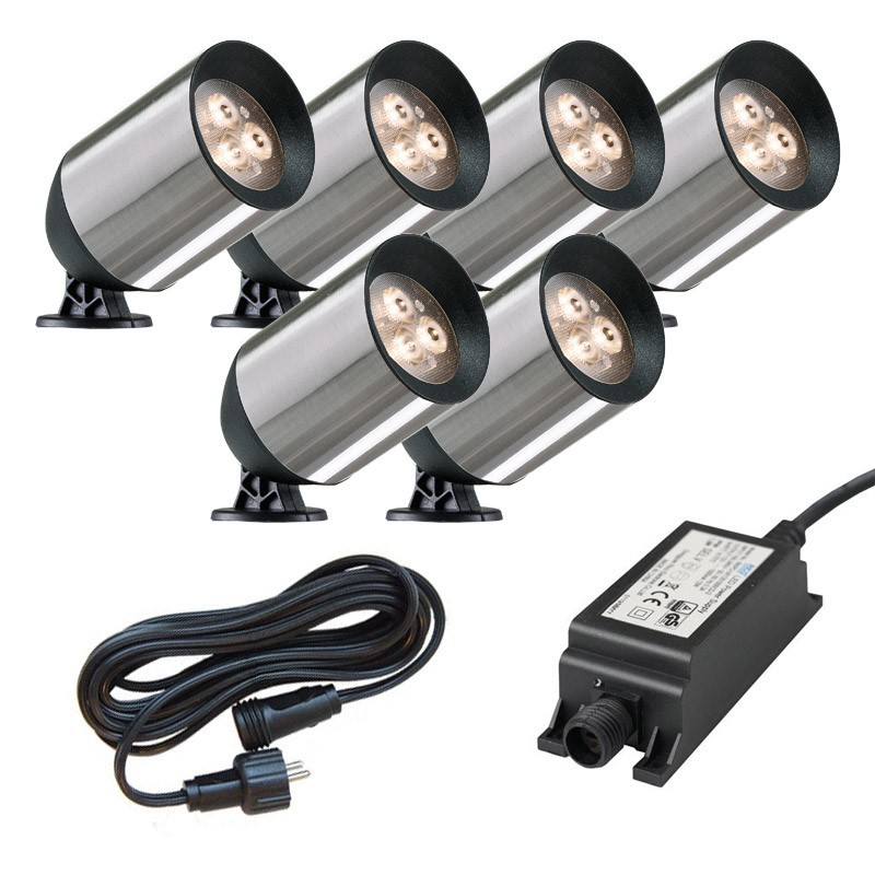 The Ludeco system can extend to a maximum of 50mtrs with a maximum loading of either 12W or 24W depending on which transformer you have selected. You can also add a dusk to dawn sensor so you don't have to worry about turning the lights off manually. The Ludeco Stig is a 12V LED spotlight light made from plastic & stainless steel, it comes with 0.5mtrs of pre-moulded SPT-1 cable.