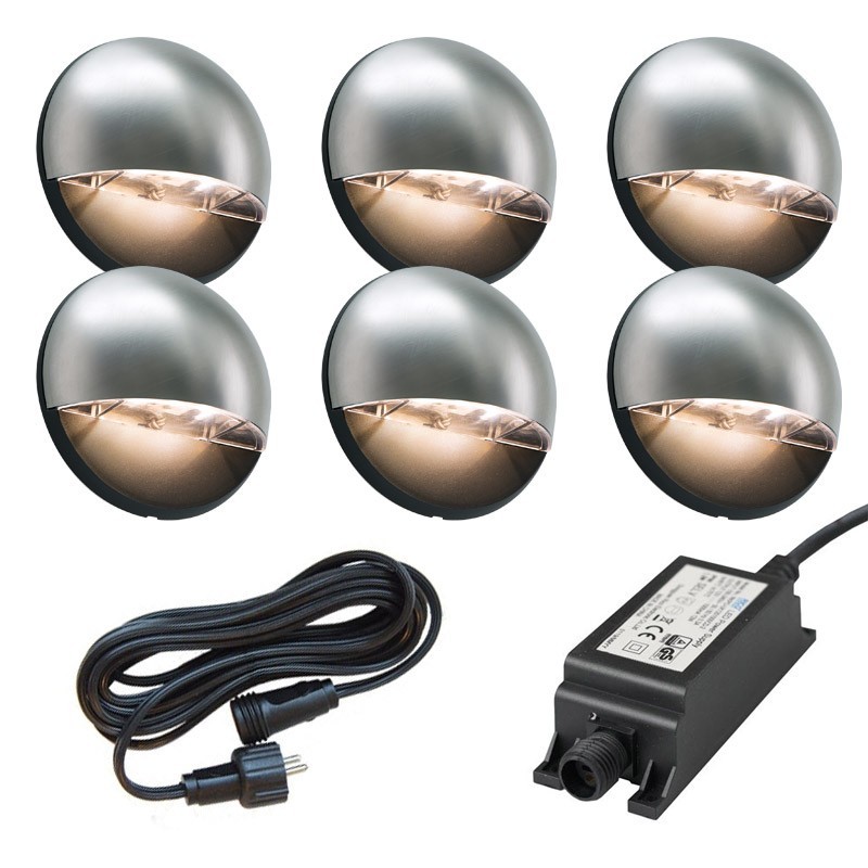 The Ludeco system can extend to a maximum of 50mtrs with a maximum loading of either 12W or 24W depending on which transformer you have selected. You can also add a dusk to dawn sensor so you don't have to worry about turning the lights off manually. The Ludeco Aron is a 12V LED wall light made from plastic & stainless steel, it comes with 2mtrs of pre-moulded SPT-1 cable.
