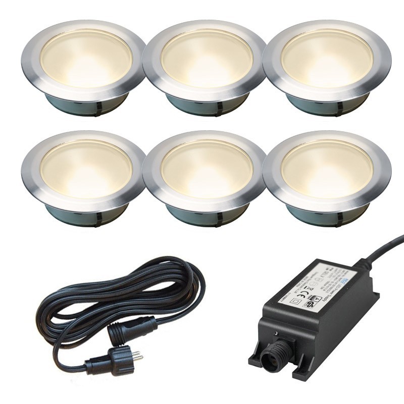 The Ludeco system can extend to a maximum of 50mtrs with a maximum loading of either 12W or 24W depending on which transformer you have selected. You can also add a dusk to dawn sensor so you don't have to worry about turning the lights off manually. The Ludeco Olan80 is a 12V LED deck light made from stainless steel, it comes with 0.5mtrs of pre-moulded SPT-1 cable.