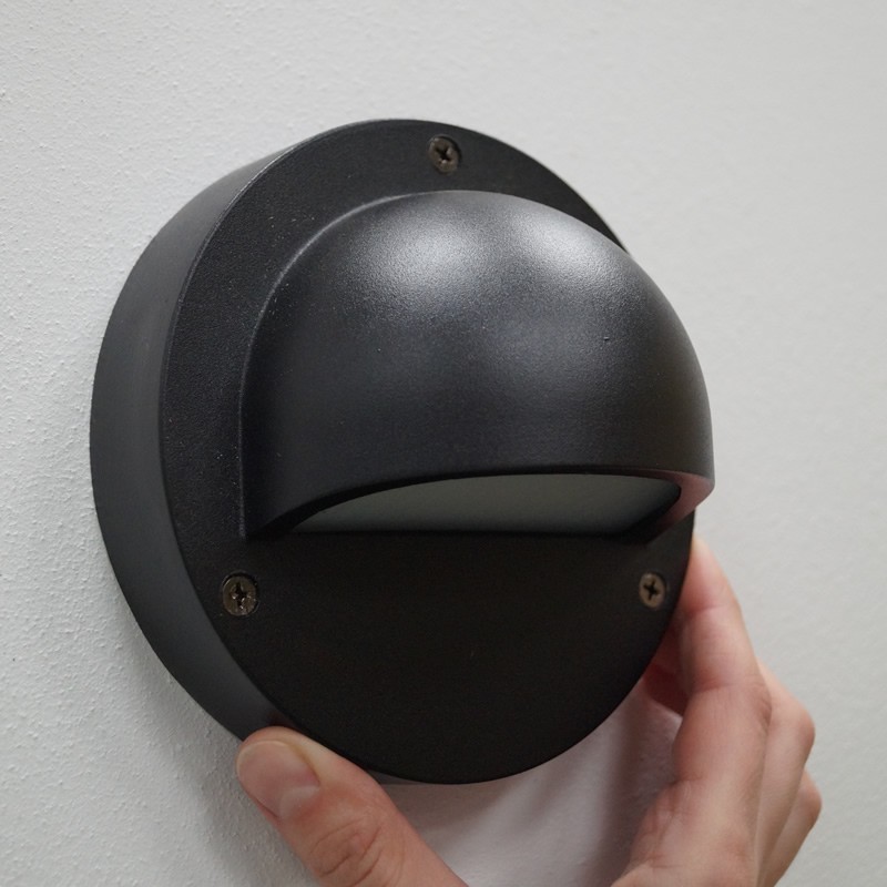 A contemporary light fitting that direct light downwards. Ideal for wall mounting and on fence posts.
